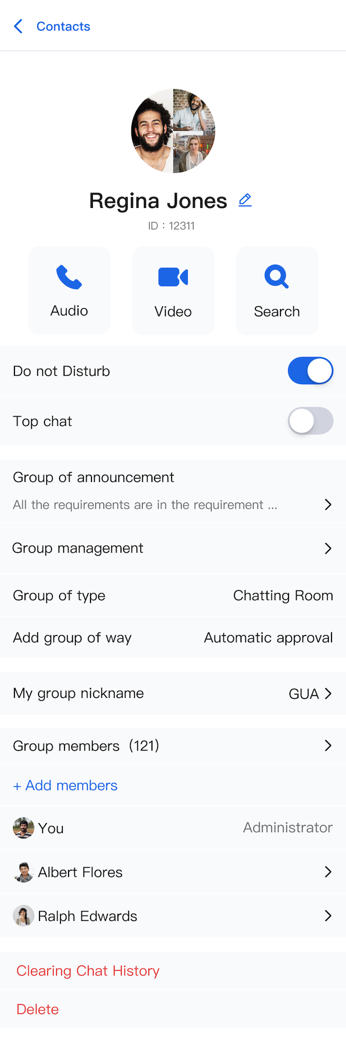 C2C Chat Settings Interface | Group Chat Settings Interface |