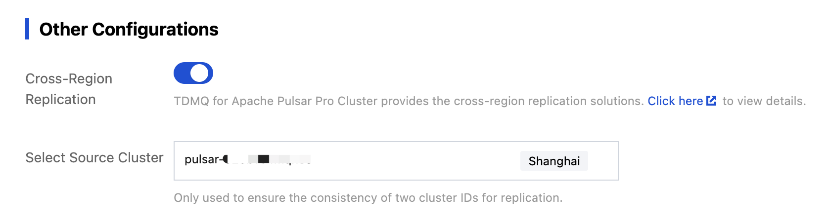 Source Cluster: Select the source TDMQ for Apache Pulsar cluster for data replication.