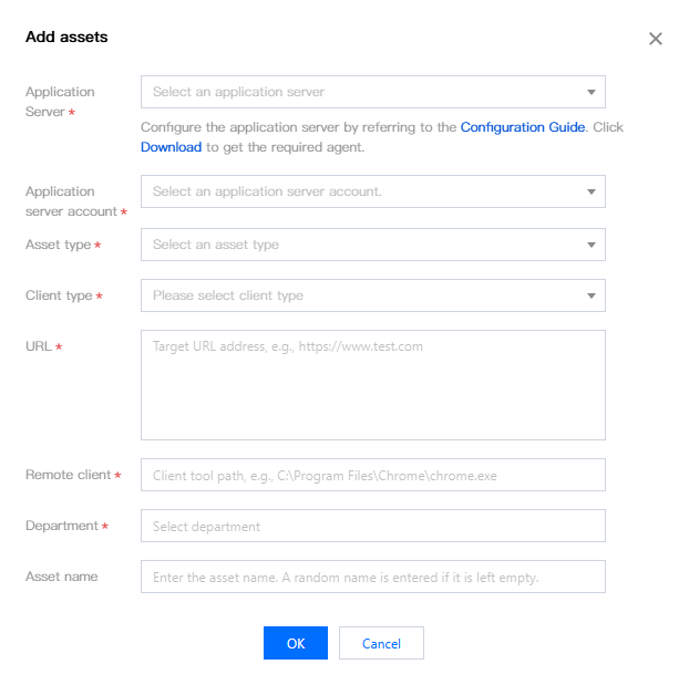 3. In the pop-up window for adding assets, fill in the asset configuration according to the actual parameter situation.