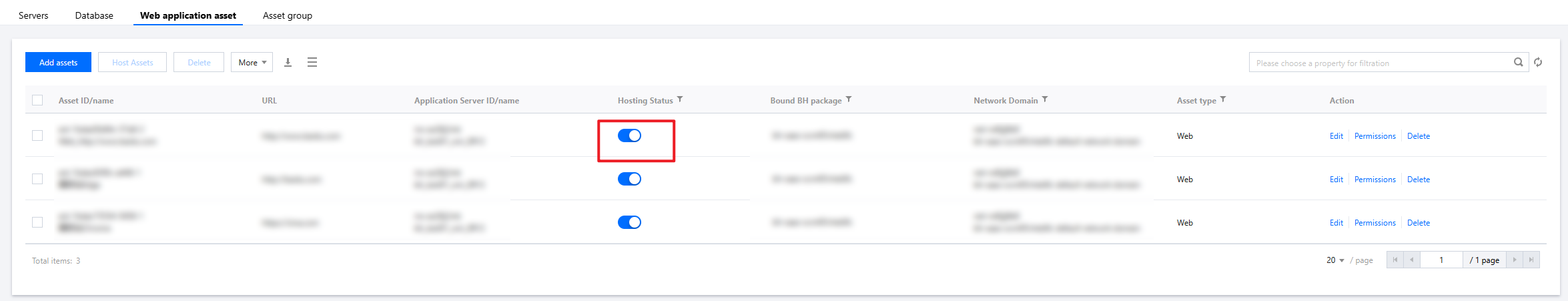 1. On the Asset Management > Host Assets page, synchronize or add configuration for host assets and manage them on the corresponding BH instance. 2. Select the Web Application Assets page and click Add Asset.