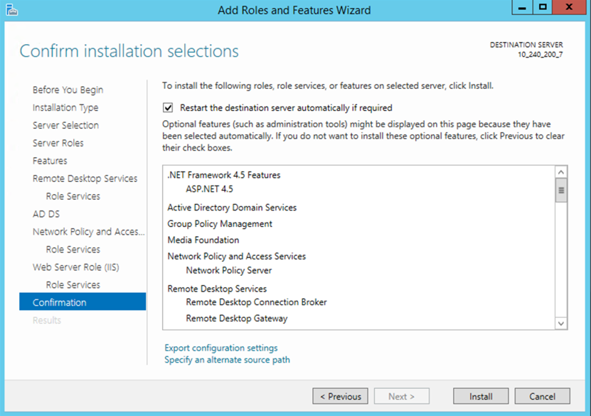 8. Confirm the components that need to be installed and click Install. After the installation, restart the server according to the actual situation.