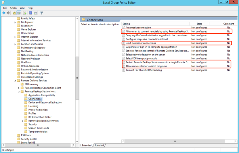 Restrict Remote Desktop Services users to a single Remote Desktop Services session: Set to Disabled.