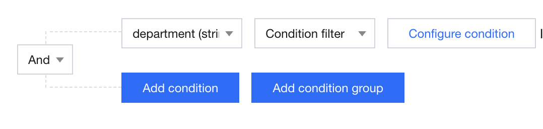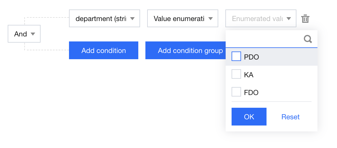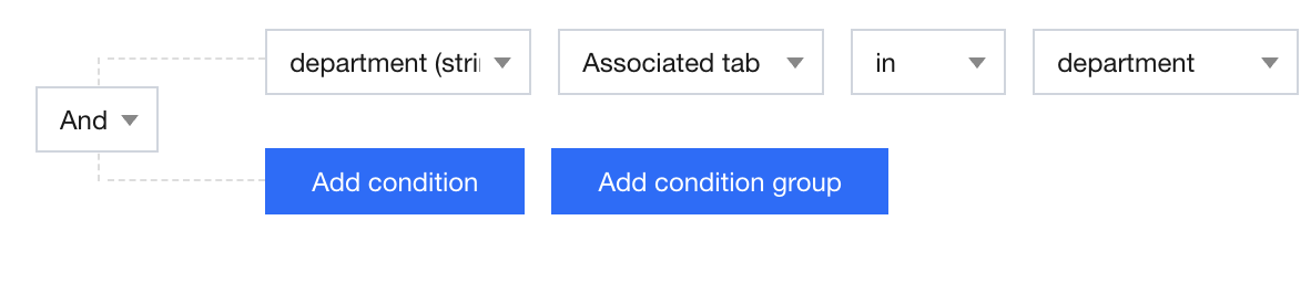 The data scope viewable to users with the corresponding role includes the corresponding rows where the field value of the selected field meets the set conditions: