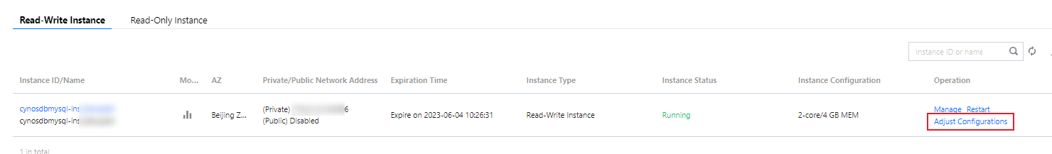 互換データベースのバージョンがMySQL 5.7の場合、クラスタリストでクラスタIDをクリックし、クラスタ管理ページのパラメータ設定タブでlower_case_table_namesパラメータを変更できます。0は大文字小文字を区別し、1は区別しません。