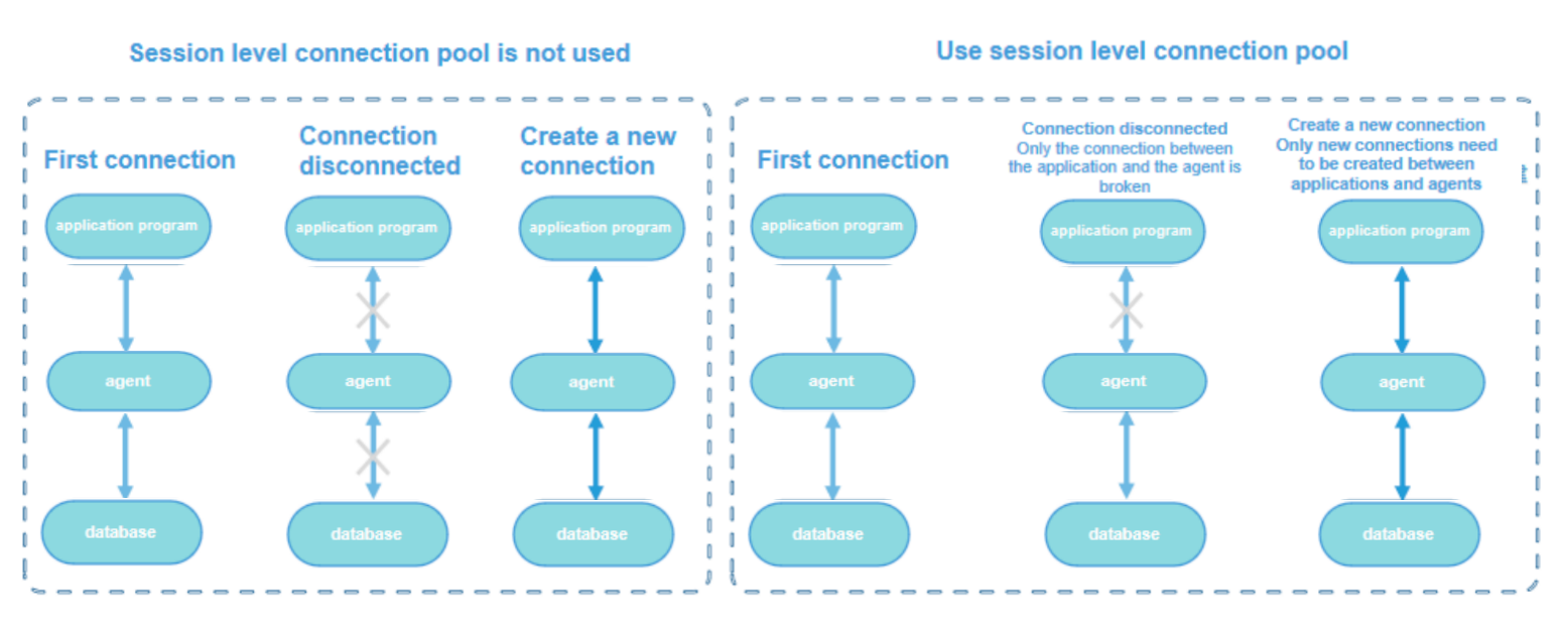 TDSQL-C for MySQLのデータベースプロキシはコネクションプール機能をサポートしています。現在サポートされているデータベースプロキシのコネクションプール機能はセッションレベルのコネクションプールであり、ショートコネクションのビジネスが頻繁に新しい接続を確立することによって引き起こされるインスタンスの負荷過剰の問題を効果的に解決できます。クライアント接続が切断された場合、システムは現在の接続がアイドル接続かどうかを判断し、アイドル接続である場合は、その接続をプロキシのコネクションプールに移し、一定時間(システムデフォルトは5秒、接続保留閾値の設定をサポート)保持します。 CLBの再調整をサポート