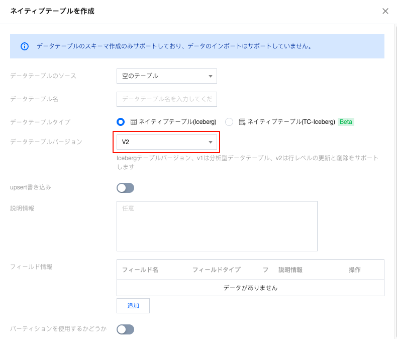 format-version | Icebergテーブルバージョン、取り得る値は1、2。 標準エンジン Spark Standard-S 1.1、SuperSQL Spark 3.5 のデフォルト値は2で、それ以外のシナリオではデフォルト値は1です。 | 2に設定することをお勧めします |