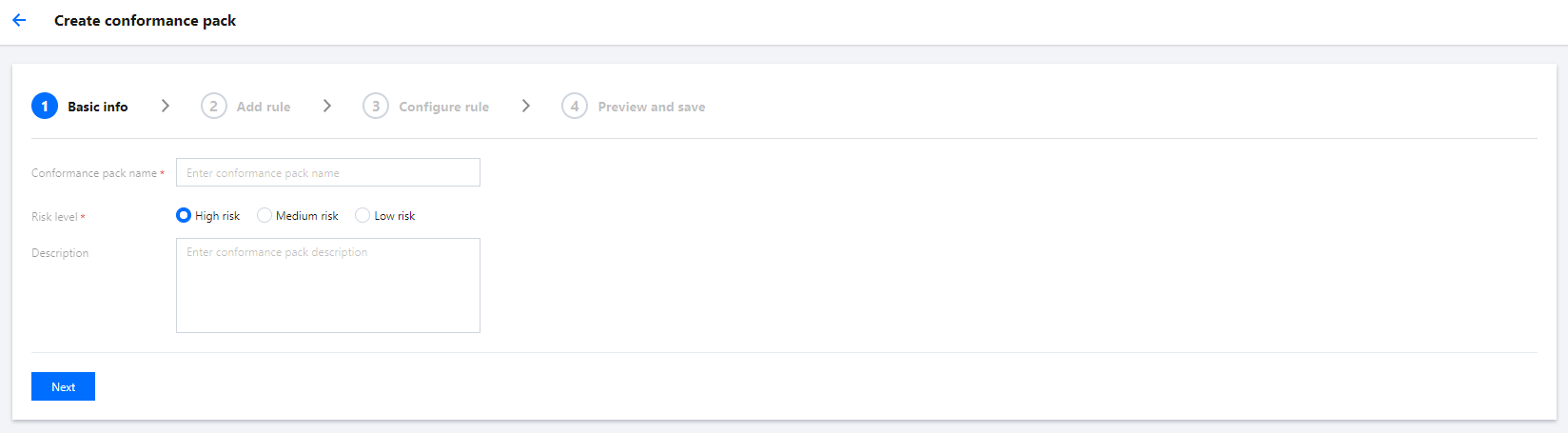 をクリックし、ルールの基本属性を設定し、ルールを追加し、ルールパラメータを設定します。これにより、コンプライアンスパッケージの作成を完了できます。