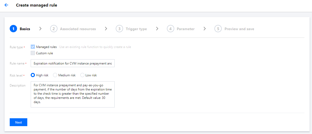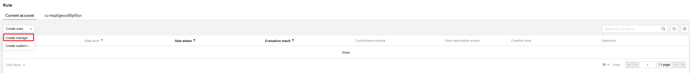 1. Configコンソール > ルールをログインします。 2. ルールページで、マネージドルールの新規作成をクリックします。(アカウントまたはグローバルアカウントグループを選択して作成することが可能であり、実際のアカウントに準じます)。