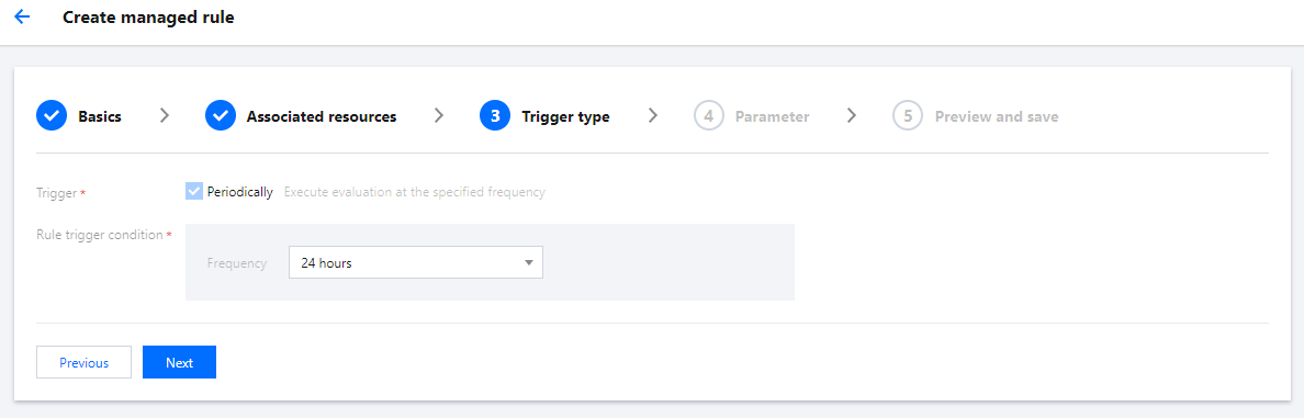 6. トリガーメカニズムページで、ルールのトリガーメカニズムを設定し、次へをクリックします。