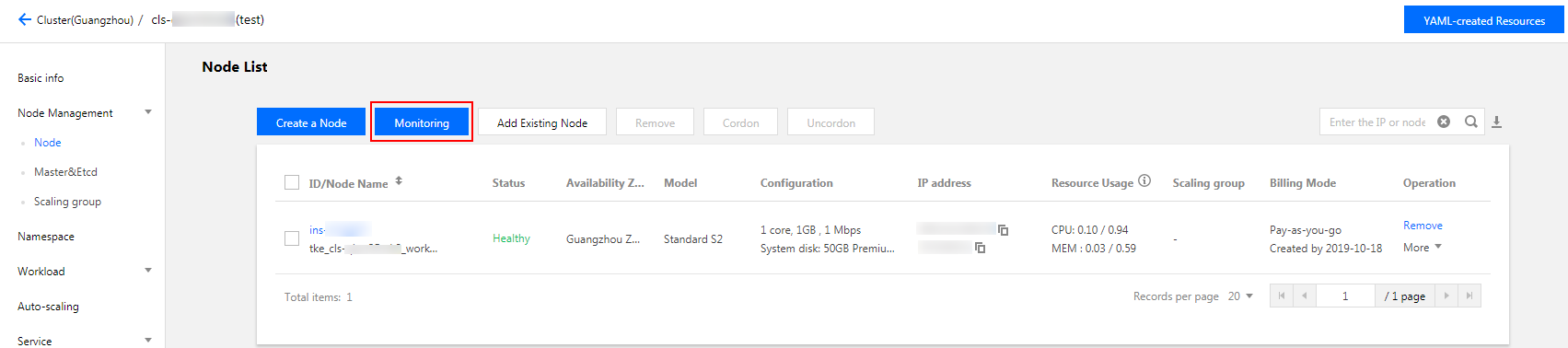3.1.1 Monitoring을 클릭하여 Node Monitoring 페이지로 이동합니다.