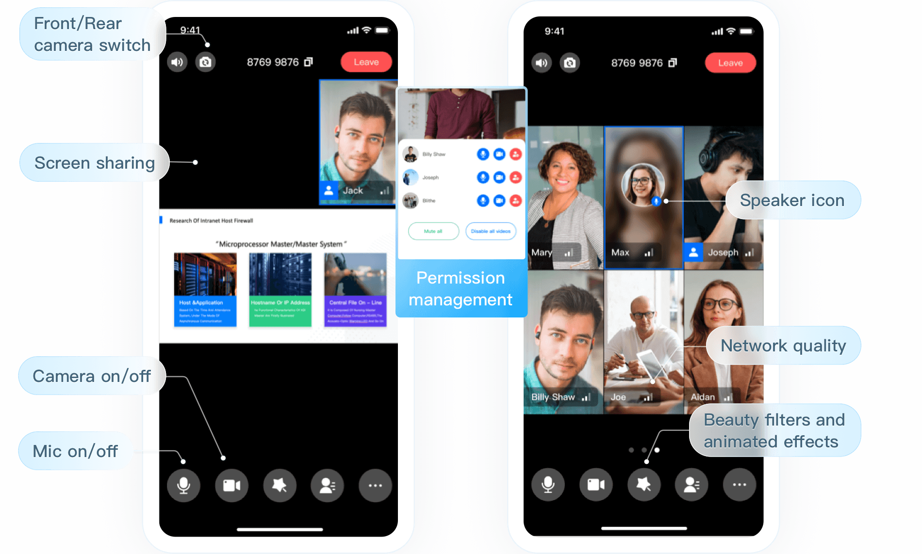 // 1. 방 구성원이 API를 호출하여 방 퇴장mTUIRoomCore.leaveRoom(new TUIRoomCoreCallback.ActionCallback() {@Overridepublic void onCallback(int code, String msg) {}});//방 구성원은 구성원 퇴장을 알리는 onRemoteUserLeave 콜백 메시지 수신@Overridepublic void onRemoteUserLeave(String userId) {Log.d(TAG, "onRemoteUserLeave userId: " + userId);}