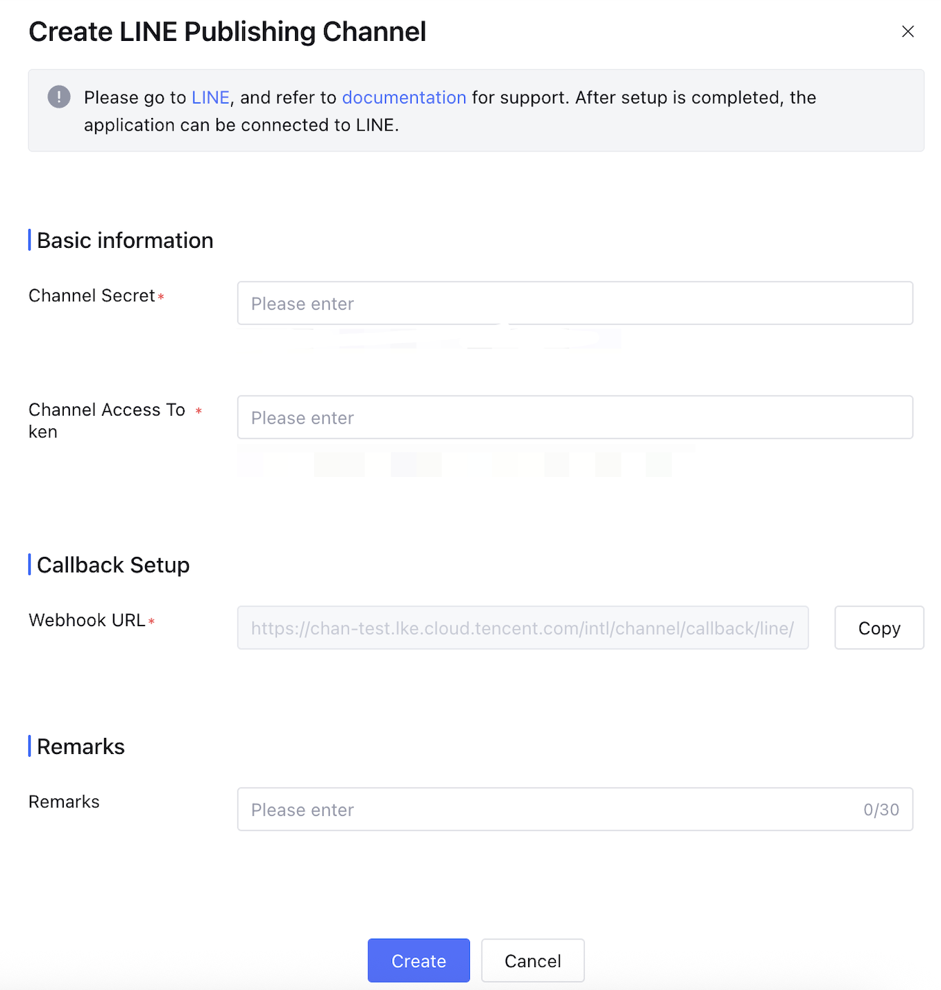 1. Go to the Tencent Cloud Intelligent Development Platform Application Release page, click Create Release Channel > LINE.