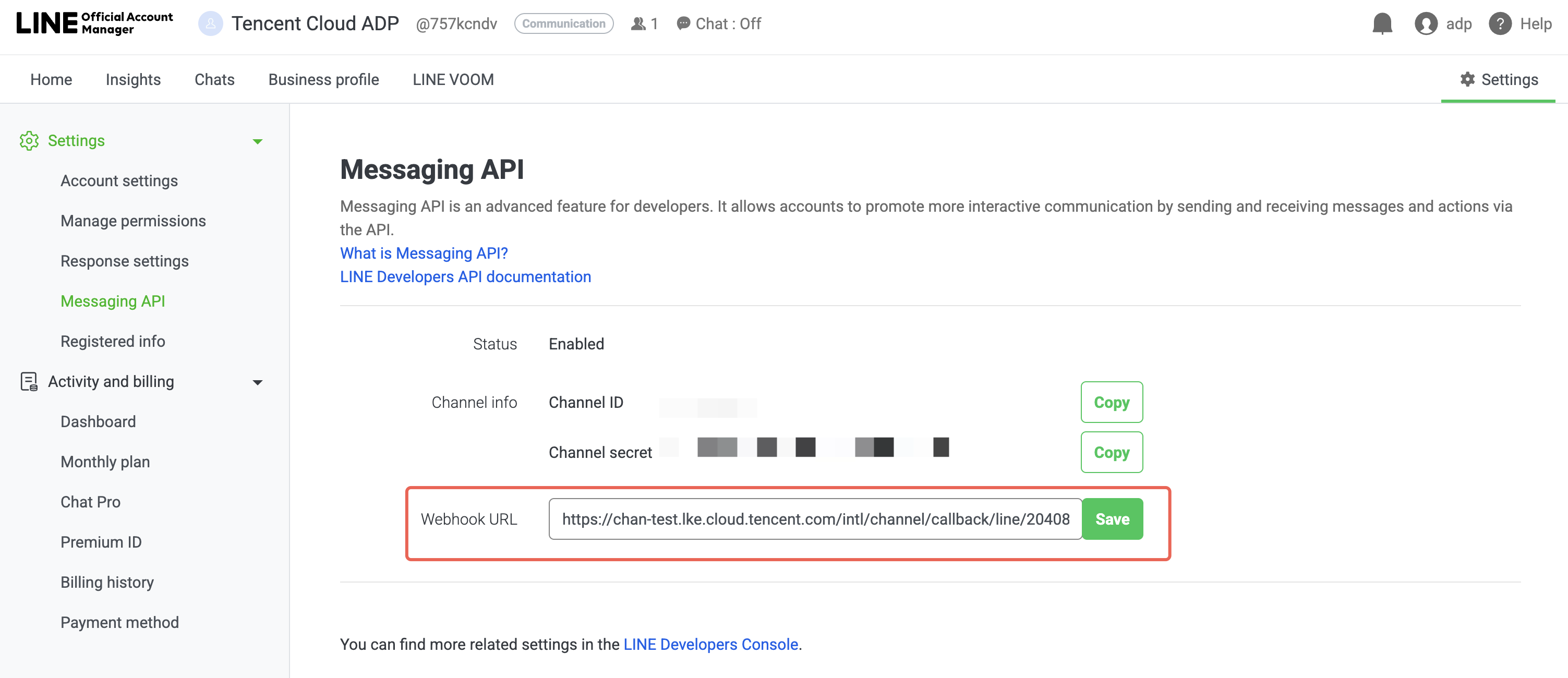 2. Enter the Channel Secret and Channel Access Token obtained in Step 1.
