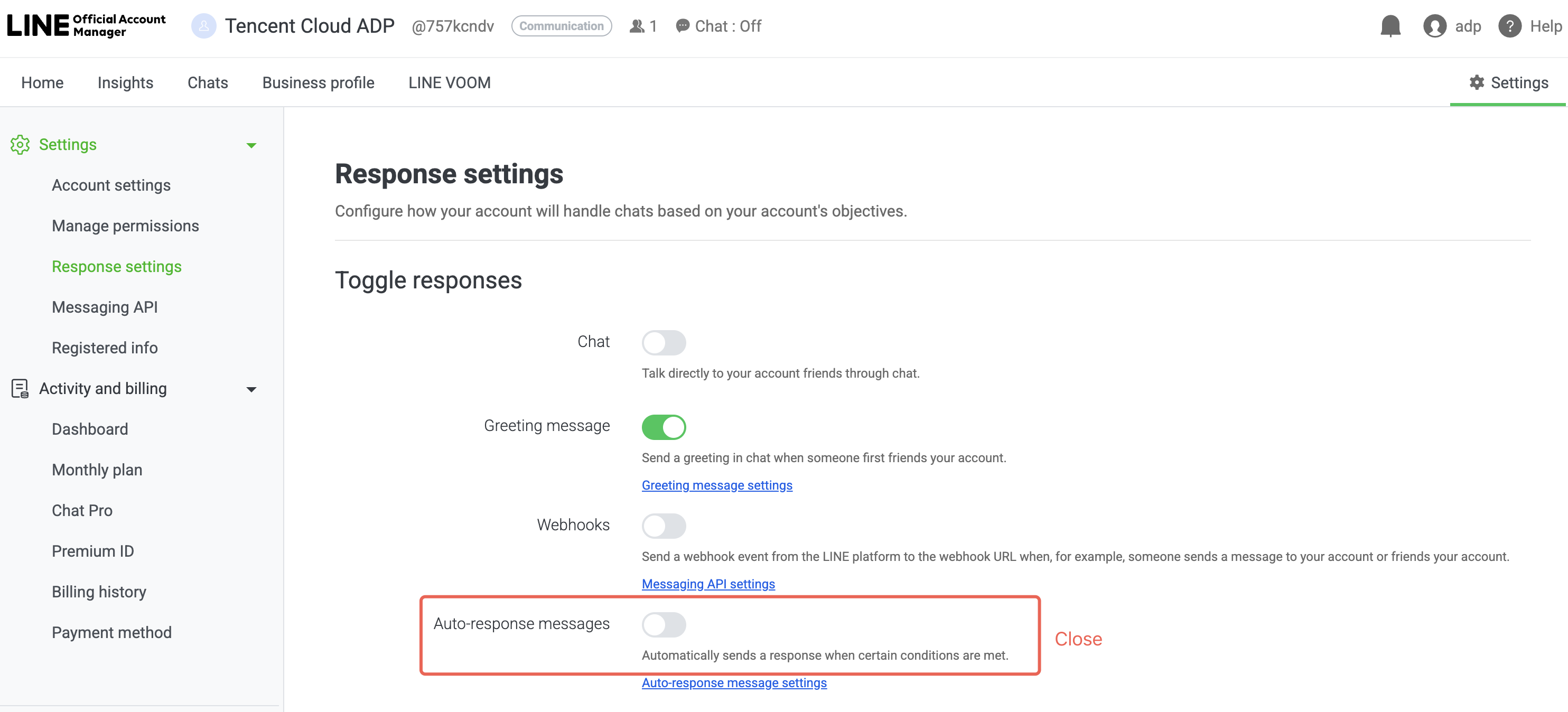 1. LINE sends auto-replies every time, which get mixed with the agent's responses. How to disable auto-reply?