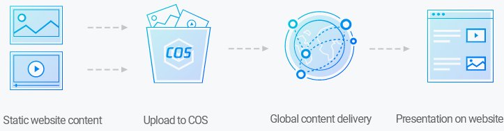 É possível armazenar todos os seus recursos estáticos, como scripts estáticos, arquivos de áudio/vídeo, imagens e anexos no armazenamento padrão no COS, que apresenta capacidade ilimitada e leituras/gravações de alta frequência para fornecer armazenamento escalonável e confiável para recursos estáticos e reduzir a pressão em servidores de recursos.