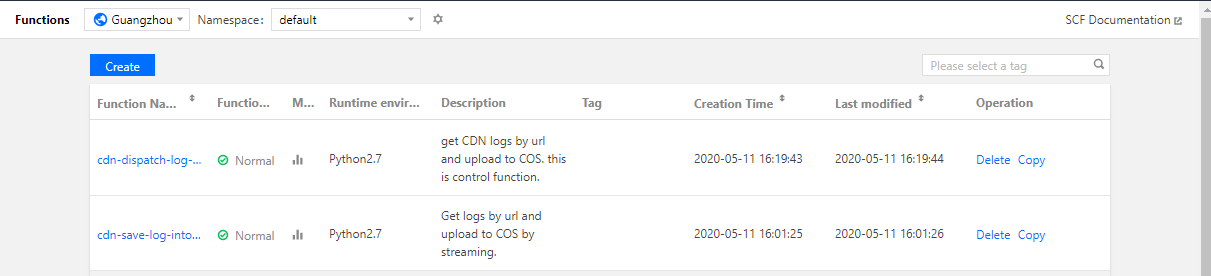 Este documento descreve como usar o SCF do Tencent Cloud para criar duas funções, a fim de armazenar os logs do CDN no COS de forma regular.