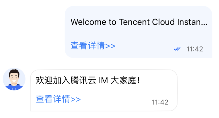 {"businessID":"text_link","link":"https://trtc.io/products/chat","text":"Welcome to Tencent Cloud Chat!"}