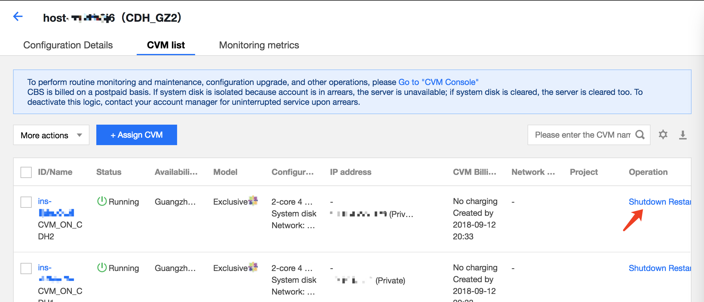 找到所要销毁的专用实例。单击右侧操作栏中