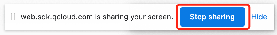 // 监听屏幕分享停止事件trtcA.on(TRTC.EVENT.SCREEN_SHARE_STOPPED, () => {console.log('screen sharing was stopped');});