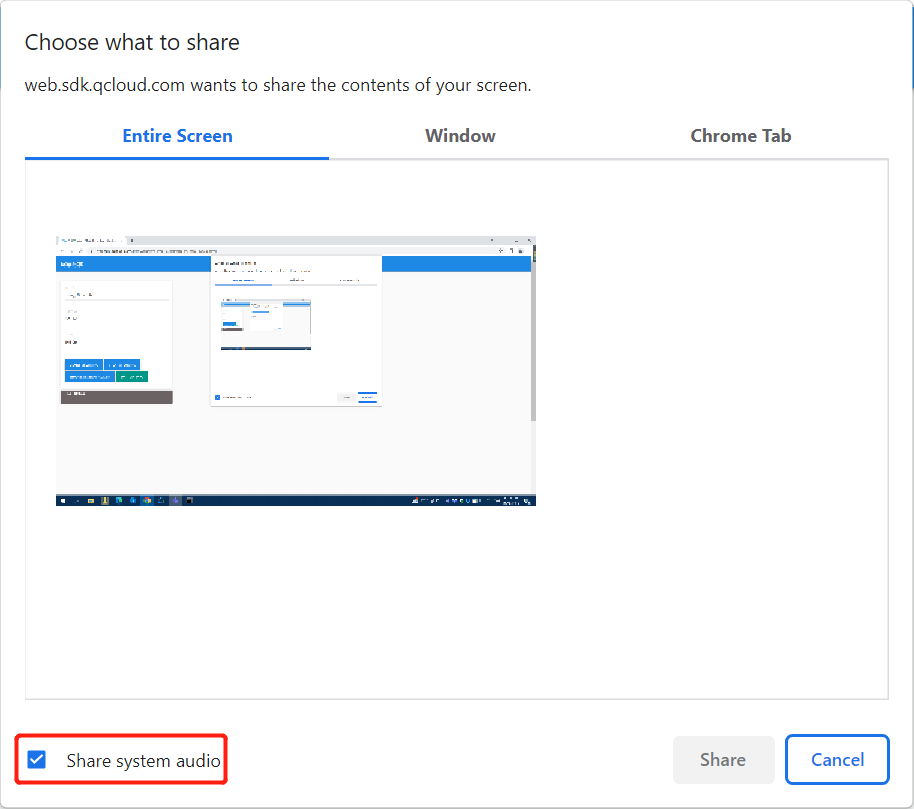 await trtcA.startScreenShare({ option: { systemAudio: true }});